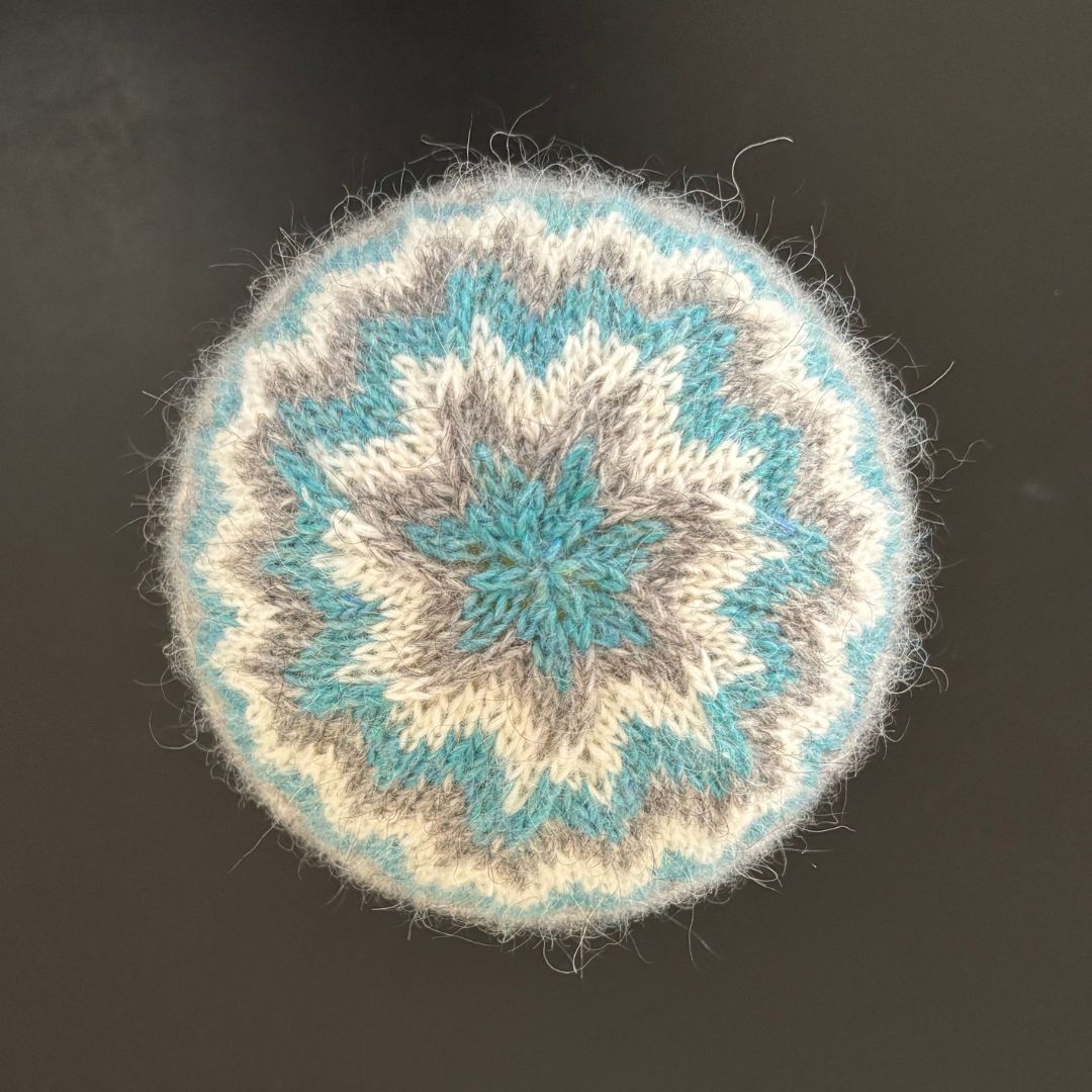 - Cast on, knit the brim, increase, knit the stranded colorwork of the head, then systematically decrease at the crown.