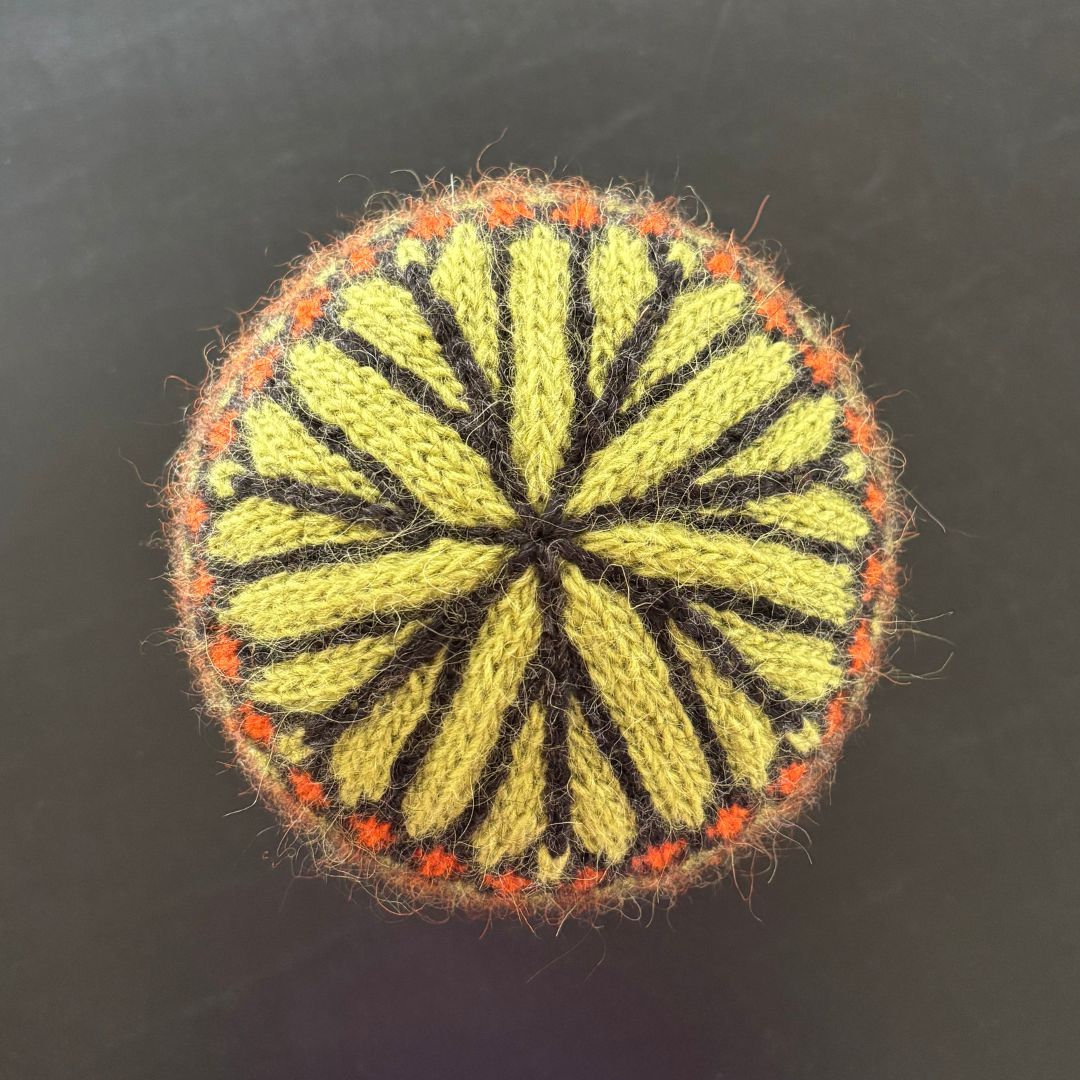 Cast on, knit the brim, increase, knit the stranded colorwork of the head, then systematically decrease at the crown.