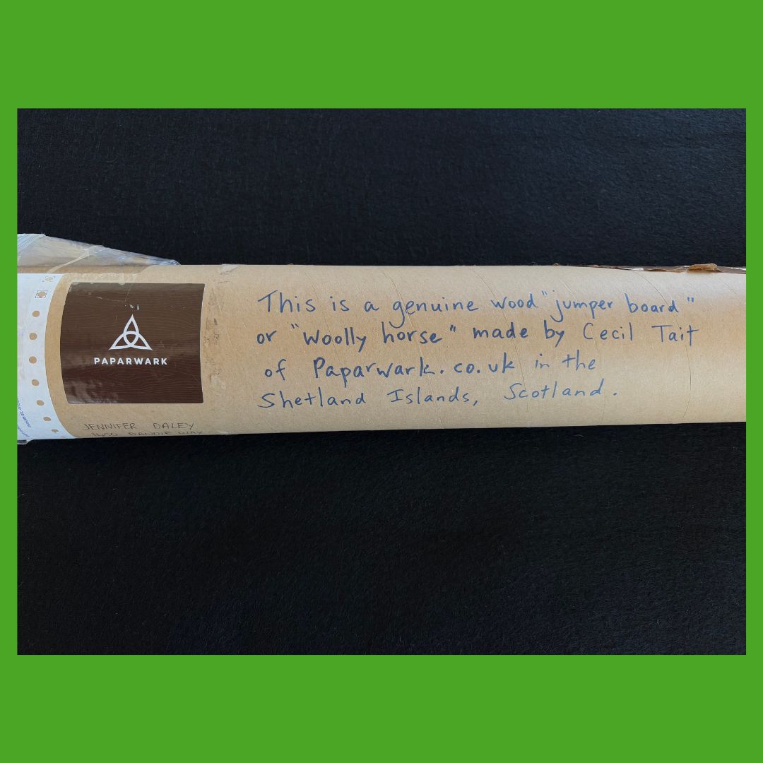 More information about these hard-to-come-by jumper boards is here on the website of the Shetland woodworking studio of Paparwark, where the jumper board was purchased.